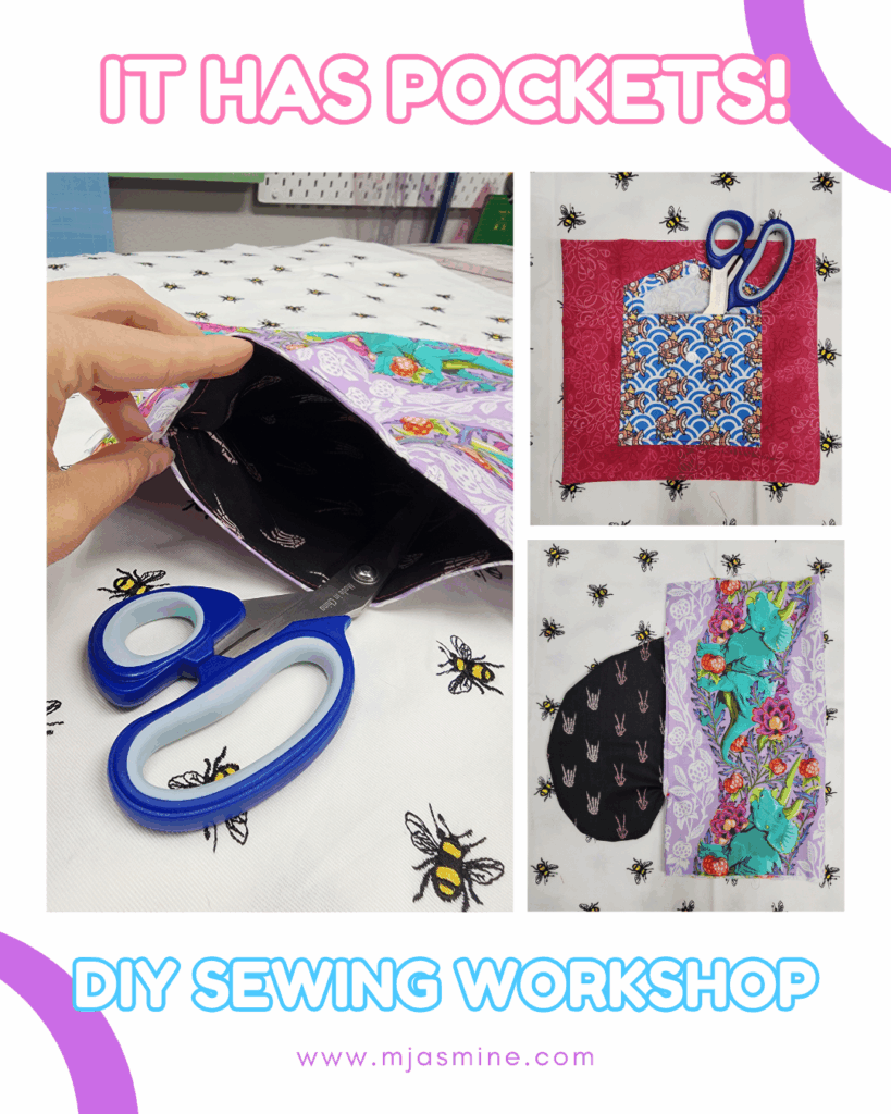 At the end, you’ll get to take home a cute, colorful pouch! The project includes a pattern and instructions created by Goldchickadee, pre-cut fabric, and all the materials you’ll need to complete your zippered pouch.
