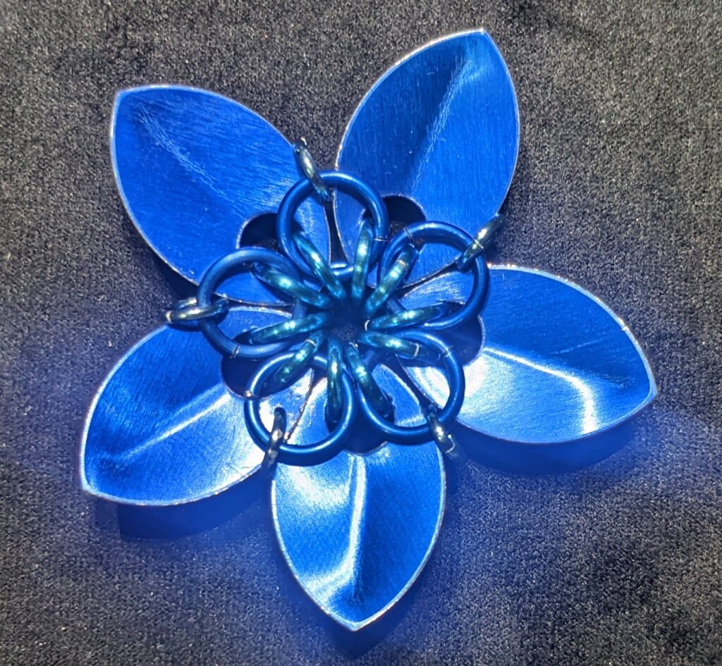 Come join in making a fun cute blue scalemail flower, get an idea into making fun trinkets, great for those thinking about getting into chainmail or scalemail and for those with more experience weavers to do a fun little project.